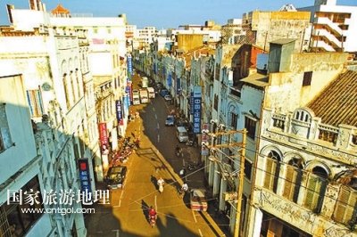 國(guó)家旅游地理 海南???月24日訊 ??隍T樓歷史文化街區(qū)(簡(jiǎn)稱騎樓老街),是??谧罹咛厣慕值谰坝^。2009年6月10日,首屆“中國(guó)歷史文化名街評(píng)選推介”活動(dòng)在北京揭曉,??隍T樓老街榜上有名。海口騎樓老街以其唯一性、獨(dú)特性榮獲首批十大“中國(guó)歷史文化名街”稱號(hào)。從2010年開始,海口市已啟動(dòng)騎樓老街改造項(xiàng)目。??隍T樓老街已成為了解??诔鞘袣v史的活畫冊(cè)。