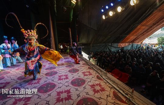 國家旅游地理 浙江金華1月3日訊 1月3日,武義壺山婺劇團(tuán)在武義縣三板橋村演出,此次演出要連演3天。新年伊始,浙江省金華市武義縣的各個鄉(xiāng)鎮(zhèn)迎來了熱鬧的“婺劇迎春”,通過政府、企業(yè)、百姓多方出資的方式,邀請數(shù)十支婺劇團(tuán)在武義各個鄉(xiāng)鎮(zhèn)演出, 幾乎場場爆滿。