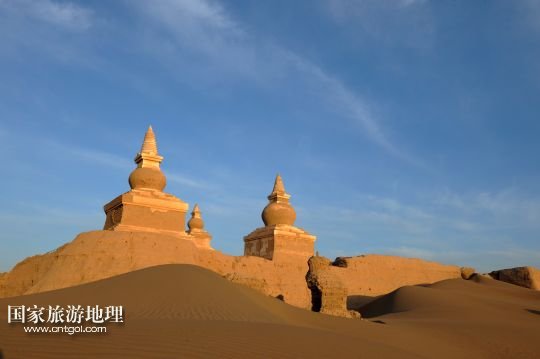 國(guó)家旅游地理 內(nèi)蒙古阿拉善4月22日訊 夕陽(yáng)中的內(nèi)蒙古阿拉善盟額濟(jì)納旗黑城遺址(4月18日攝)。地處內(nèi)蒙古自治區(qū)最西端的阿拉善盟,著名的巴丹吉林、騰格里、烏蘭布和三大沙漠橫貫全境,沙漠、胡楊、戈壁、巖畫、湖泊、古城描繪出27萬平方公里蒼茫雄渾的大漠神韻,構(gòu)成了獨(dú)具特色的沙漠文化旅游資源。 /新華社記者 張領(lǐng) 攝
