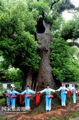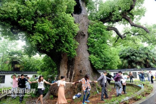 國家旅游地理 江西上饒5月18日訊 5月17日,游客在江西省德興市海口鎮(zhèn)??诖迩旯耪僚酝嫠!=魇〉屡d市??阪?zhèn)??诖逵幸豢?800多歲“高齡”的巨型古樟樹,歷史上曾遭受過多次雷擊、火災(zāi)等,其中最近的一次發(fā)生在2010年10月1日,由于村內(nèi)孩童進(jìn)入可容納幾十人的樹洞內(nèi)玩耍,不慎引發(fā)火災(zāi),致使大火從樹洞里燒起,讓這棵千年古樟幾近滅頂。此后,當(dāng)?shù)卮迕褡园l(fā)捐款近6萬元,請來有關(guān)專家救治。經(jīng)過近4年的精心護(hù)救,如今這棵千年古樟再度逢春,枝繁葉茂,吸引了各方游客前來觀賞。 /新華社發(fā)(卓忠偉 攝)