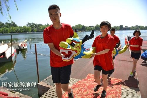 國家旅游地理 北京5月28日訊 5月28日,龍舟賽開始前,工作人員按照傳統(tǒng)儀式將“神龍”請上碼頭點睛。當(dāng)日,北京什剎海街道舉辦迎端午節(jié)系列活動,通過賽龍舟和纏繒子、吆喝表演等豐富多彩的民俗文化活動,讓端午節(jié)的傳統(tǒng)習(xí)俗回歸百姓生活,彰顯什剎海地區(qū)民俗文化的特色。新華社記者 李鑫 攝