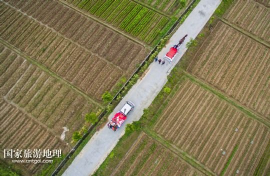 國(guó)家旅游地理 浙江嘉興5月10日訊 5月9日,新郎乘坐馬車和迎親隊(duì)伍行進(jìn)在西牛橋村的村道上。當(dāng)日,浙江省桐鄉(xiāng)市西牛橋村一對(duì)新人放棄常見(jiàn)的汽車車隊(duì),而是采用乘坐馬車、親友步行的方式,給周邊村民上演了一場(chǎng)低碳、綠色的“馬車婚禮”。