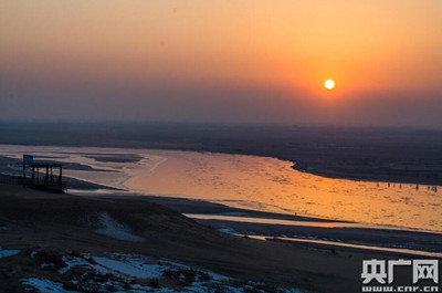 原標(biāo)題:寒冬黃河寧夏黃沙古渡出現(xiàn)“落日繪流凌”美景