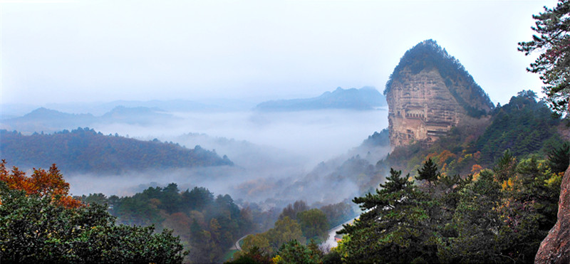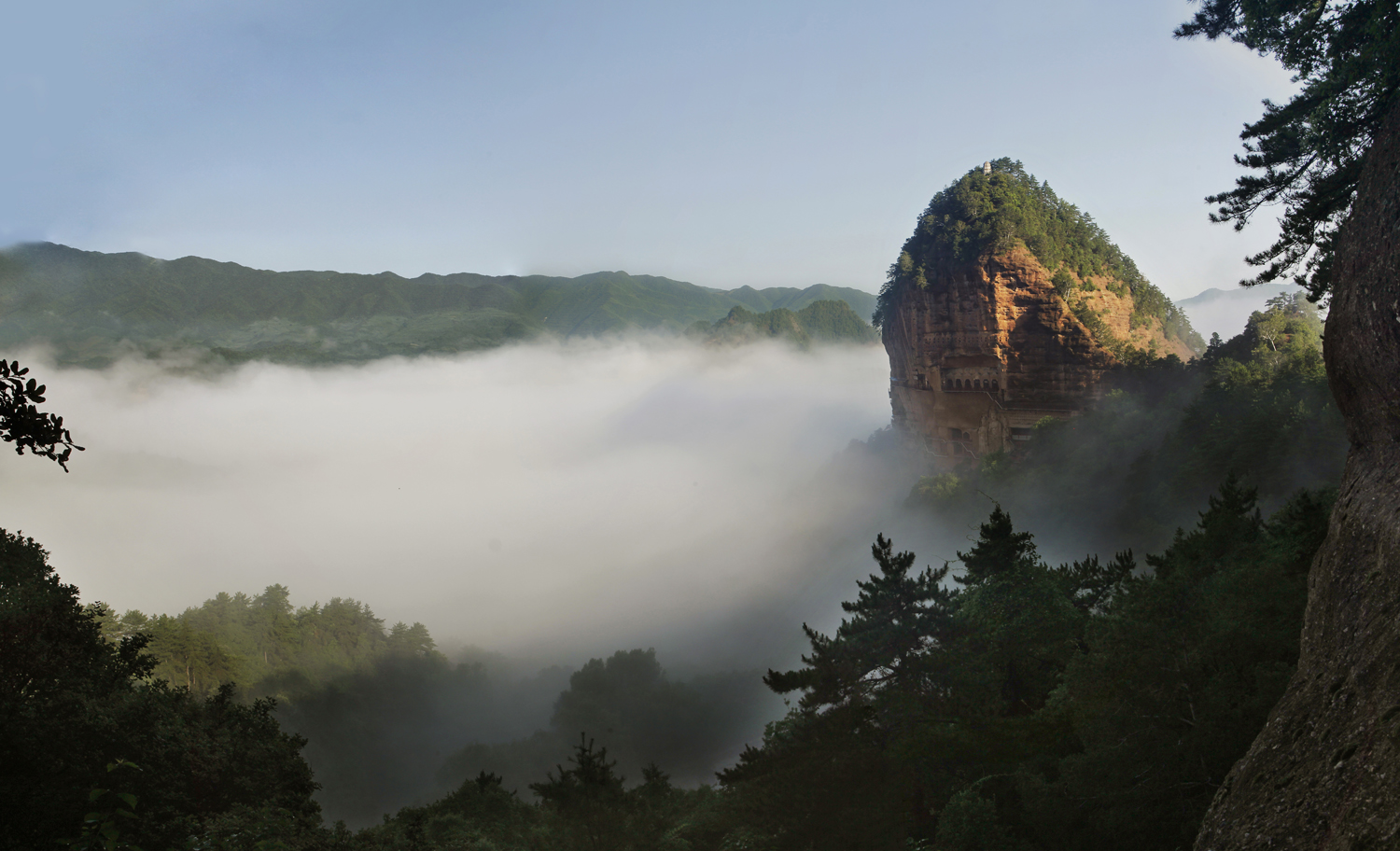 圖為世界文化遺產(chǎn)、中國(guó)四大石窟之一、被譽(yù)為“東方雕塑館”的國(guó)家國(guó)家5A級(jí)旅游景區(qū)、國(guó)家級(jí)風(fēng)景名勝區(qū)、國(guó)家級(jí)自然保護(hù)區(qū)、全國(guó)重點(diǎn)文物保護(hù)單位——天水麥積山